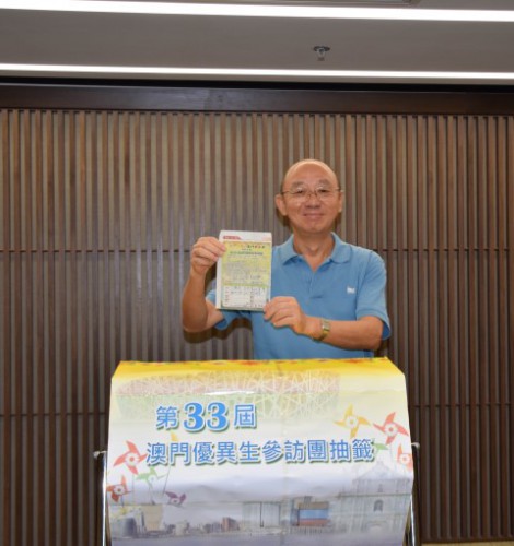 No passado dia 22 de Julho, pelas 15H30, no 3.º andar do Edifício do Jornal Ou Mun, as entidades organizadoras e colaboradoras da 33.ª Edição da Excursão de Estudantes de Macau com Bom Aproveitamento Escolar, nomeadamente, a Fundação Macau, o Jornal Ou Mun, o Gabinete para os Assuntos dos Chineses Ultramarinos de Guangzhou e a Associação Académica Sol Matinal, fizeram o sorteio, entre os estudantes candidatos, de uma viagem de visita e intercâmbio de 5 dias à capital da China, Pequim, que se inicia no dia 9 de Agosto.