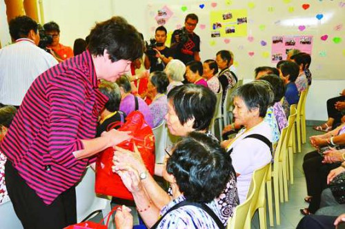 Com o apoio da Fundação Macau (FM), a Associação Geral das Mulheres de Macau (AGMM) volta a realizar, no 5.º ano, as celebrações do Festival de Chong Chau, conhecido como o Festival de Bolo Lunar, nos bairros comunitários. No dia 16 de Setembro, foram oferecidos os “Sobrescritos Auspiciosos” a 1361 famílias e os responsáveis da AGMM esperam, através desta actividade, transmitir as preocupação da sociedade pelos grupos mais vulneráveis e divulgar as boas virtudes tradicionais de ajuda recíproca. O Sra. Eliza Ho, membro do Conselho de Administração da FM, esteve presente no acto, que teve lugar no Centro Diurno de Cuidados de Idosos Lok I, para oferecer, em conjunto com os outros convidados de honra, os “Sobrescritos Auspiciosos” aos idosos inscritos nesta Acção. Uma equipa de voluntários ajudou a enviar os “Sobrescritos Auspiciosos” para casa dos idosos que não conseguiram deslocar-se ao Centro por motivos de saúde. Os itens disponibilizados nos sacos são comidas típicas do Festival de Bolo Lunar e artigos necessários à vida quotidiana.