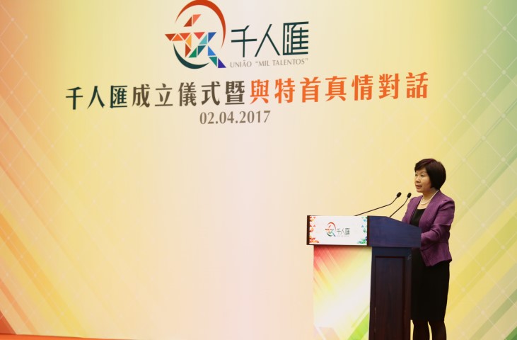 A Cerimónia da Constituição da “União Mil Talentos”, que teve lugar hoje (02-04-2017) no Fórum de Macau, contou com a presença de um conjunto de ilustres convidados de honra, nomeadamente, Chui Sai On (Sua Excelência o Senhor Chefe do Executivo), Wang Zhiming (Chefe do Gabinete de Ligação do Governo Central da RPC na RAEM), Ye Dabo (Comissário do Ministério dos Negócios Estrangeiros da RPC na RAEM), Qian Yibing (Director da Direcção Geral de Intercâmbio do Gabinete para os Assuntos de Hong Kong e Macau do Conselho de Estado), Liu Jin (Chefe do Gabinete para os Assuntos de Hong Kong e Macau do Ministério de Educação), Huang Zhigang (Vice-Secretário-Geral da Federação Juvenil da China), O Lam (Chefe do Gabinete do Chefe do Executivo) , Wu Zhiliang e Zhong Yi Seabra de Mascarenhas (Presidente e Vice-Presidente do Conselho de Administração da Fundação Macau, respectivamente), que testemunharam a constituição oficial da plataforma “União Mil Talentos” juntamente com os estudantes e professores que participaram no “Programa Mil Talentos” do ano passado.
