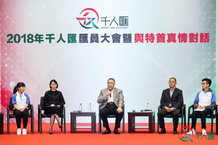 Teve lugar hoje, dia 24 de Março, da parte da tarde, no Fórum de Macau, a Reunião dos Membros da “União Mil Talentos”, 2018 acompanhada de uma sessão de diálogo com o Senhor Chefe do Executivo. Para além do Senhor Chefe do Executivo, Chui Sai On, estiveram presentes outros convidados de honra, nomeadamente o Subdirector do Gabinete de Ligação do Governo Central da RPC na RAEM, Sun Da, o Comissário do Ministério dos Negócios Estrangeiros da China na RAEM, Ye Dabo, o Vice-Presidente da Federação da Juventude da China, Mok Chi Wai, a Chefe do Gabinete para os Assuntos de Hong Kong, Macau e Taiwan do Ministério de Educação, Liu Jin, a Chefe do Gabinete do Chefe do Executivo, O Lam, o Presidente do Conselho de Administração da Fundação Macau, Wu Zhiliang, o Chefe-Adjunto do Departamento de Intercâmbios do Gabinete para os Assuntos de Hong Kong e Macau do Conselho de Estado, Lu Haisheng, e a Vice-Presidente do Conselho de Administração da Fundação Macau, Zhong Yi Seabra de Mascarenhas. Estiveram também presentes os participantes das excursões realizadas em 2016 e 2017 ao abrigo do “Programa Mil Talentos” para rever as acções postas em prática no âmbito da “União Mil Talentos” e perspectivar o seu desenvolvimento e, ainda, trocar impressões com o Senhor Chefe do Executivo.