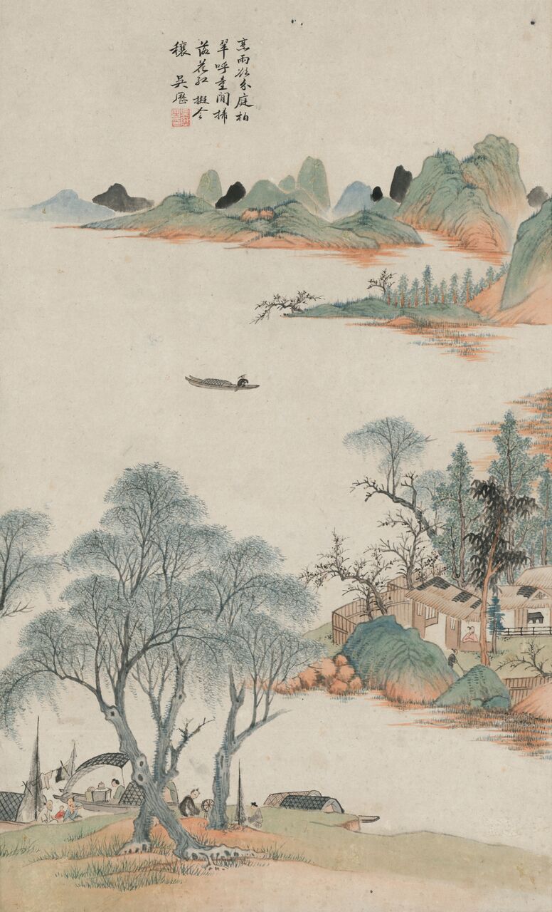 Wu Li (1632-1718), com o nome original de Qi Li e o nome artístico Yu Shan, nasceu em Changshu, na província de Jiangshu. Sendo um renomado pintor do início do período Qing, foi um dos “Seis Mestres de Qing”, juntamente com Wang Shimin, Wang Jian, Wang Yuanqi, Wang Hui e Yun Shouping. Wu Li era exímio em vários campos, particularmente na pintura. Durante gerações a sua família residiu perto da antiga morada do discípulo de Confúcio, Yan Yan (nome de cortesia Ziyou), e porque havia um poço muito profundo (mo jing) na casa de Yan Yan, Wu Li ganhou o epíteto de “Mo Jing Dao Ren” (Taoísta do Poço Profundo) e "Tao Xi Ju Shi" (Budista do Riacho dos Pêssegos). O seu pai faleceu quando ainda era criança e Wu Li foi criado pela mãe. Quando cresceu, dedicou-se à pintura, produzindo emulações meticulosas de originais das dinastias Song e Yuan que vendia para sustentar a mãe. Durante o período Kangxi, Wu Li veio para Macau com Philippus Couplet (1624-1692), um jesuíta flamengo, para receber formação religiosa no Colégio de São Paulo, onde ocasionalmente registava cenas da sua vida em inscrições de pinturas e na sua colectânea de poesia San ba ji. Segundo estes registos, ficamos a saber que o 20º ano do reinado do Imperador Kangxi (1681) foi o ano mais fecundo de Wu Li, pintando o maior número de pinturas e escritos na sua estadia de mais de 3 anos em Macau, o que mostra que os seus estudos de catolicismo não o impediam de escrever. Infelizmente, desconhece-se o paradeiro destas pinturas produzidas em Macau, com excepção da “Pintura do Rio Penjiang”, hoje na colecção do Museu de Xangai. Wu Li retornou mais tarde a Jiangsu para fazer trabalho missionário e foi ordenado padre aos 57 anos de idade (em 1688, no 27º reinado de Kangxi), começando a evangelizar na região de Jiangnan. No 57º ano do reinado do Imperador Kangxi (1718) faleceu em Xangai com a provecta idade de oitenta e sete anos tendo sido enterrado no cemitério católico do lado de fora do Grande Portão do Sul.