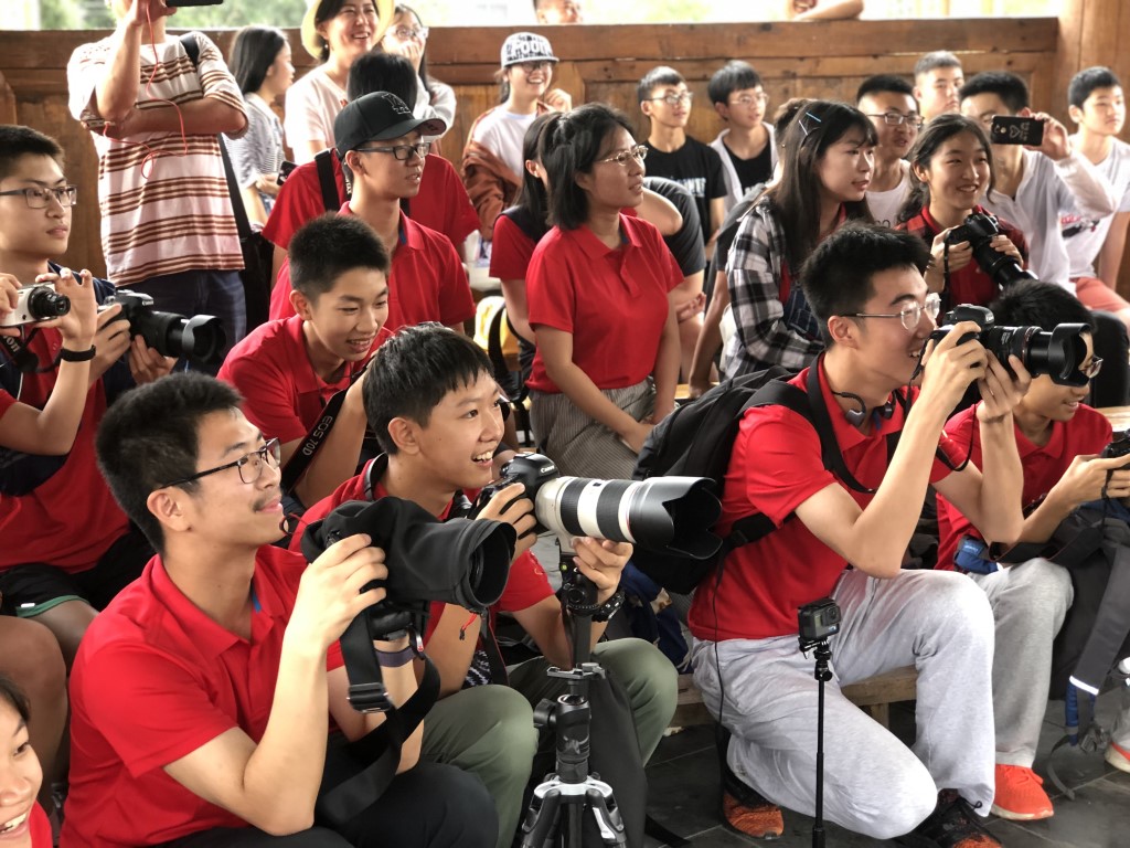 Chegando à aldeia de Congjiang, os nossos jovens foram com 10 jovens de Pequim e os funcionários à Aldeia de Zhanli para tirar fotografias. Quando estavam na floresta natural, os alunos foram atraídos pelas construções e vestuário típico e trocaram ideias sobre a técnica da fotografia. De seguida os alunos participaram num seminário sobre cultura típica e fotogfrafia.