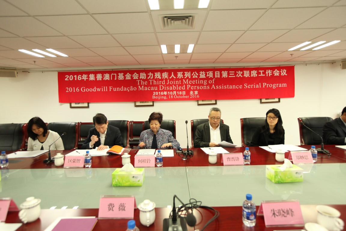 澳門基金會與中國殘疾人福利基金會簽訂了為期三年的合作協議,於2015年至2017年期間開展系列殘疾人公益項目。為加強項目跟進工作,日前與該基金會在北京進行了工作會議,就2016年共開展的5個項目,包括促進殘疾人文化藝術發展項目、促進殘疾人體育運動項目、集善殘疾兒童助養項目、助聽行動項目、人才培訓和國際交流項目,進行討論及檢視工作成效。