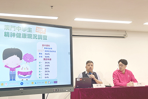 澳門中華學生聯合總會聯同聖若瑟大學社會發展觀察中心,發佈《澳門中學生精神健康調查二0二五》報告,顯示焦慮及情緒困擾問題值得社會關注。