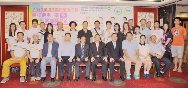 由中國澳門體育總會聯合會主辦、澳門基金會資助的2016奧運年專題學術活動——「錯誤使用藥物影響運動員的一生」專題講座,於6月25日下午3時至6時,假教業中學報告廳舉行。活動旨在進一步增加澳門特區體育界人士及青少年運動員對藥物使用及濫藥危害的認識。來自兩岸與港澳地區的主講嘉賓圍繞主題作出演講,向澳門各體育界代表分享藥物對運動員生涯的影響。